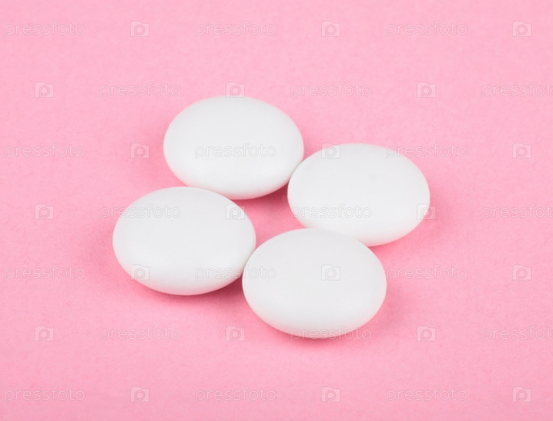 Белые таблетки на розовом фоне