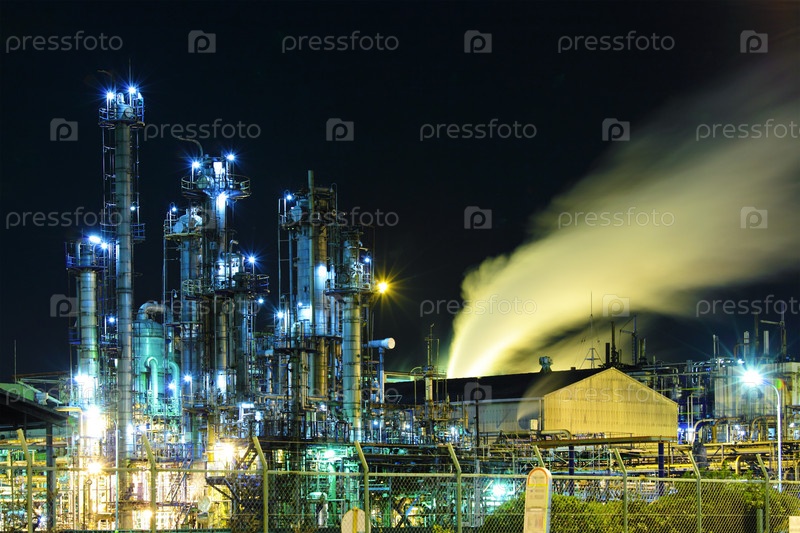 Нефтеперегонный завод в ночное время