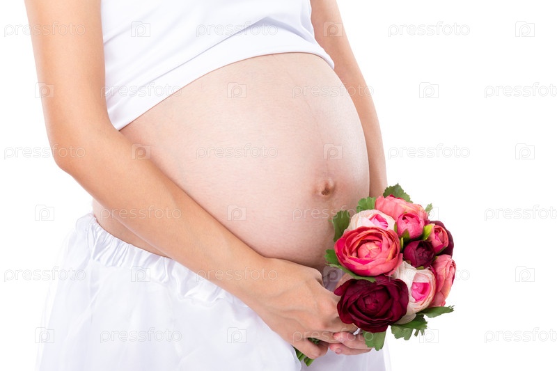 Беременная женщина с цветами