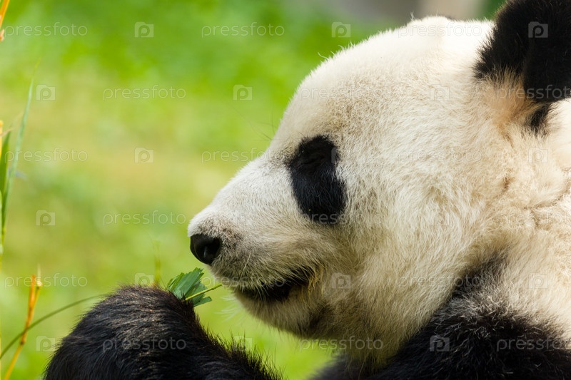 Панда ест листья