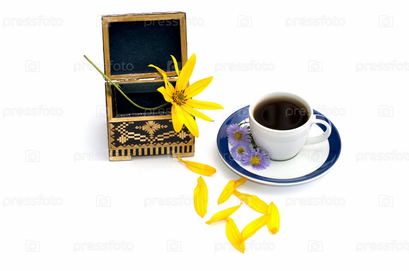 Коробочка и чашка цветочного чая