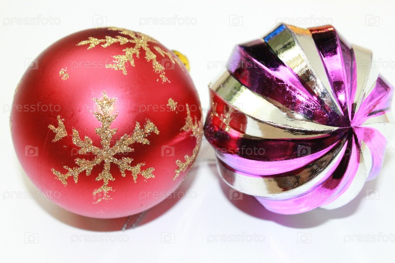Два елочных шара крупным планом. Изолированные на белом фоне