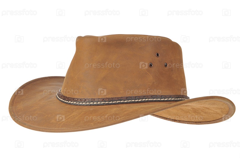 Коричневая ковбойская шляпа на белом фоне