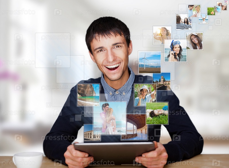 Молодой человек с планшетным компьютером. Концепция информационной технологии