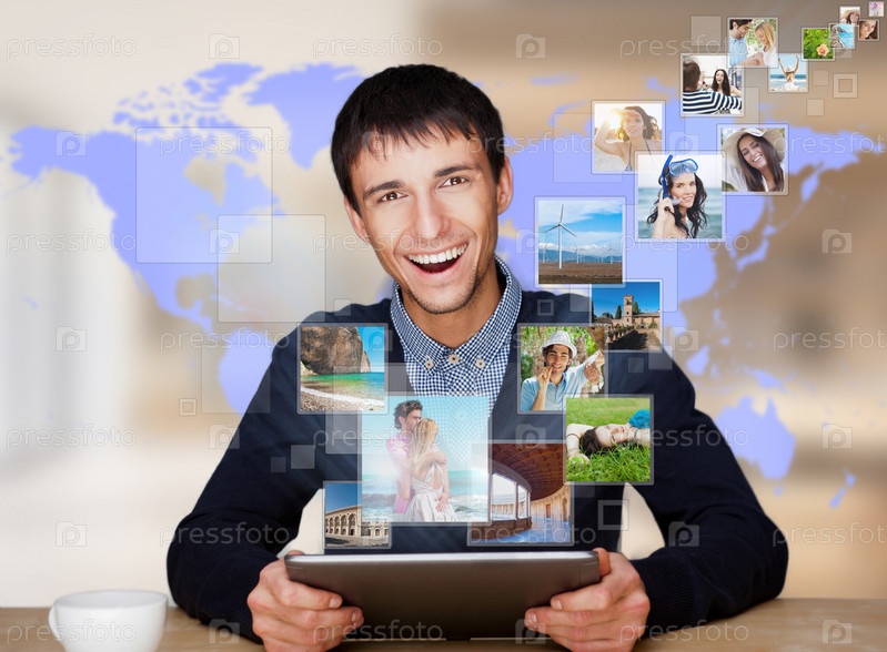 Молодой человек с планшетным компьютером. Концепция информационной технологии