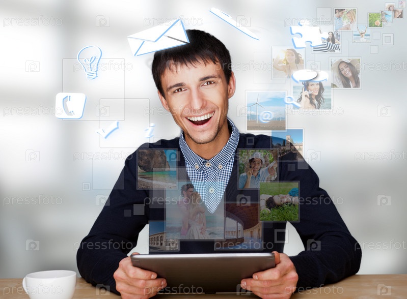 Молодой человек с планшетным компьютером. Концепция информационной технологии