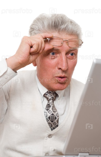 бизнесмен среднего возраста с ноутбуком на белом