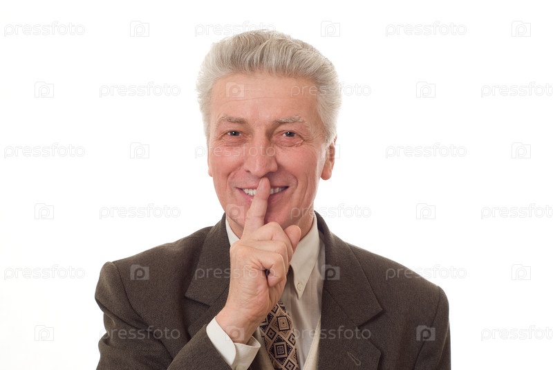 Человек, показывает знак замолчать на белом