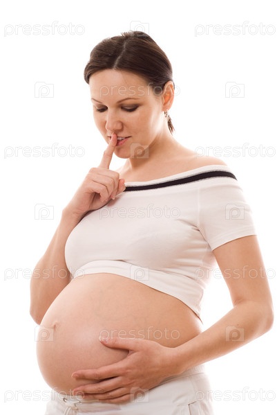 Красивая беременная женщина на белом фоне