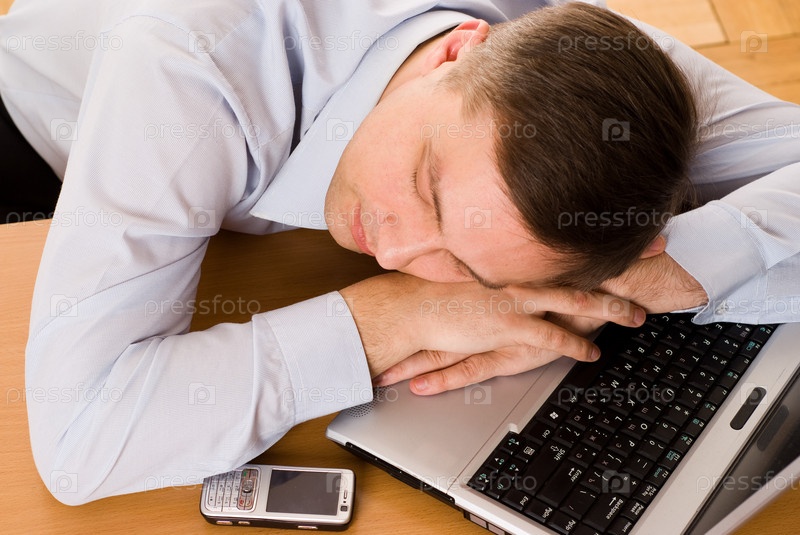 Молодой человек спит с ноутбуком