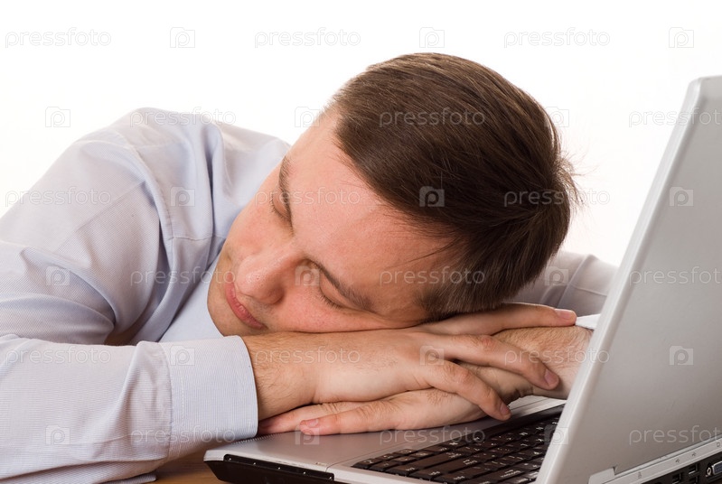 Молодой человек спит с ноутбуком