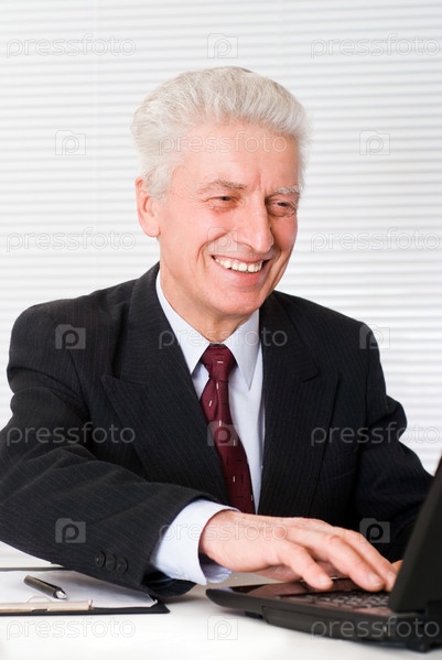 Пожилой бизнесмен с ноутбуком