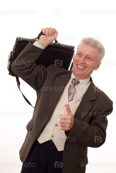 Довольный бизнесмен на белом фоне