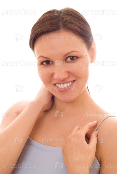 Счастливый женщина на белом фоне