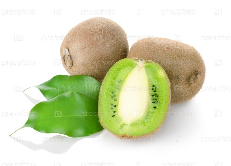 Свежие киви с зелеными листьями, изолированные на белом фоне