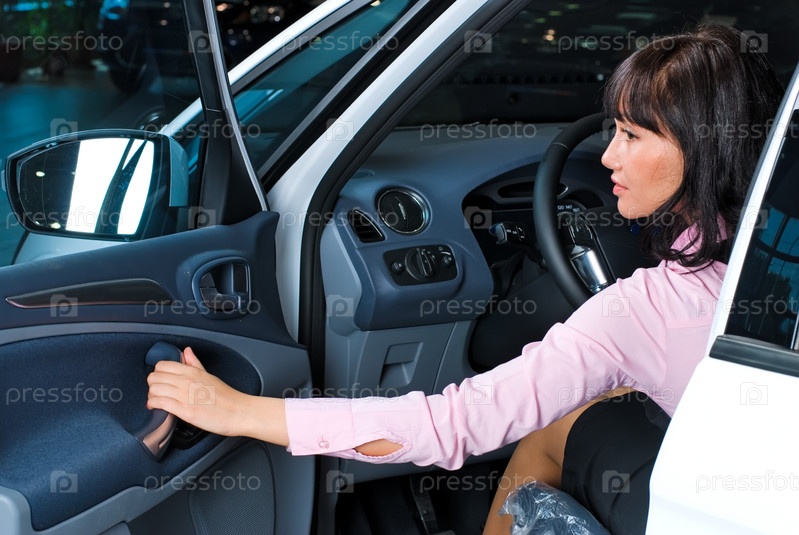 Женщина сидит в машине, готовясь к движению