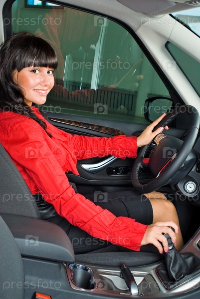 Молодая красивая женщина водит автомобиль