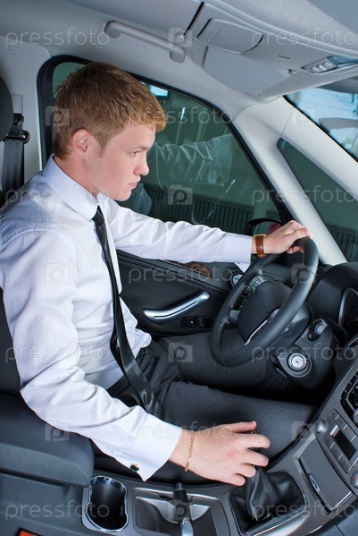Молодой человек за рулем автомобиля
