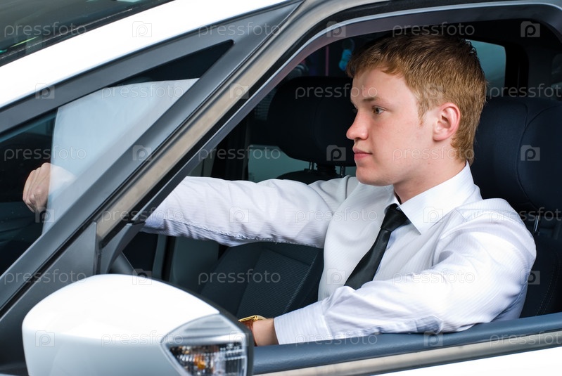 Молодой человек за рулем автомобиля