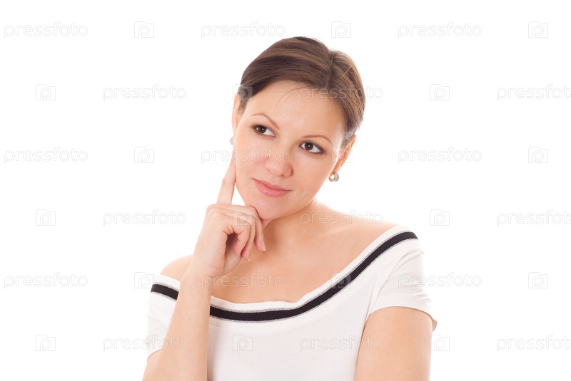 Портрет молодой женщины на белом фоне