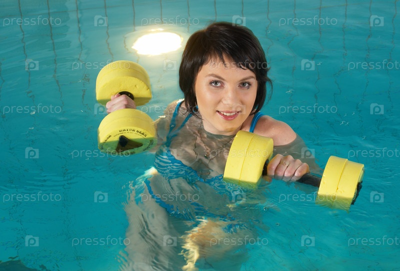 Молодая женщина в фитнес-центре в бассейне