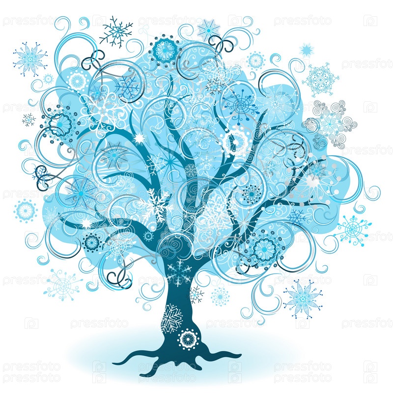 Заснеженное дерево на белом фоне