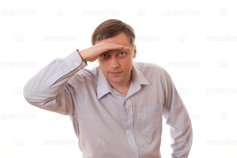 Серьезный мужчина смотрит вдаль