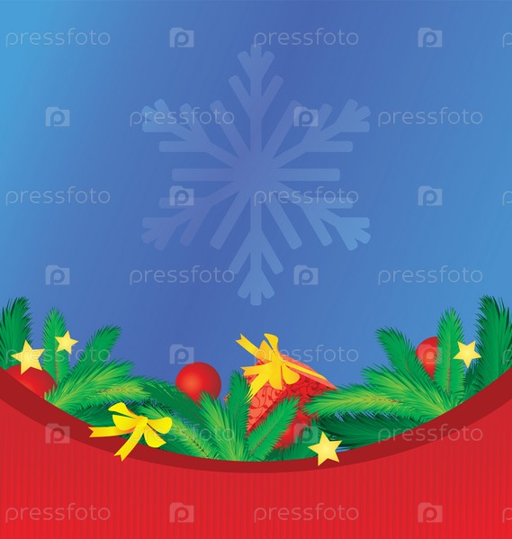 Ветки ели и подарки на цветном рождественском фоне