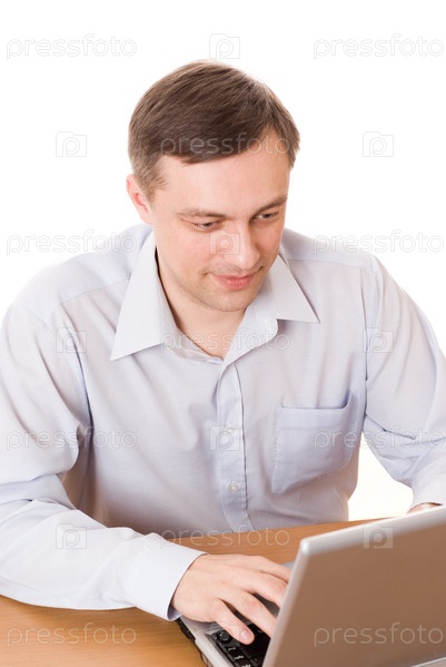 Деловой мужчина работает на ноутбуке