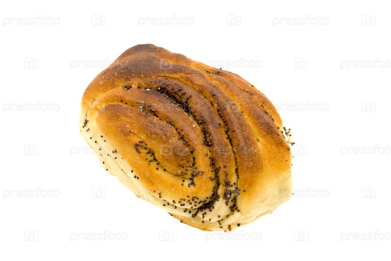 Булочка с маком на белом фоне, изолированная