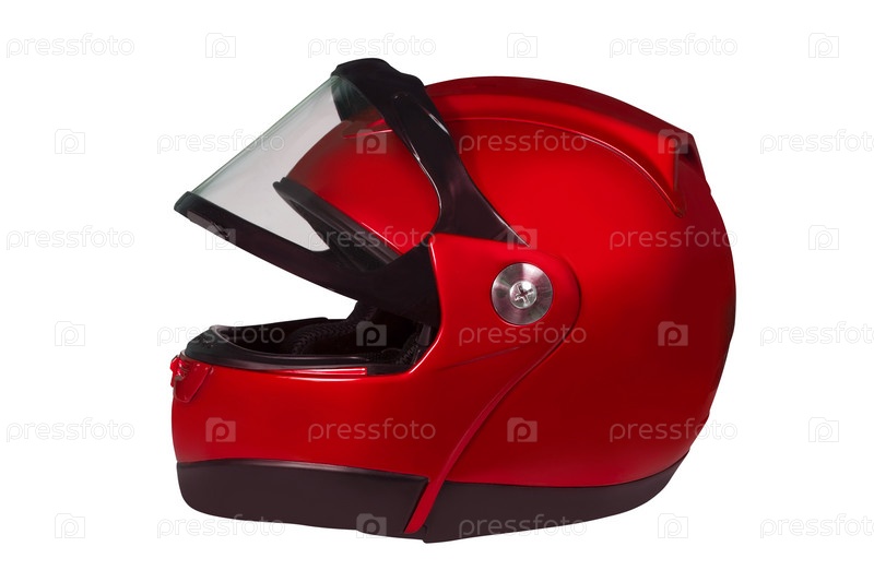 Мотоциклетный шлем с поднятым стеклом, изолированный, на белом фоне