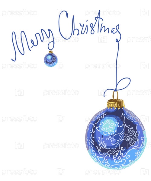 Елочные шары и надпись " С Рождеством" на белом фоне