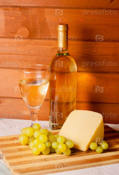 Белое вино, сыр, виноград