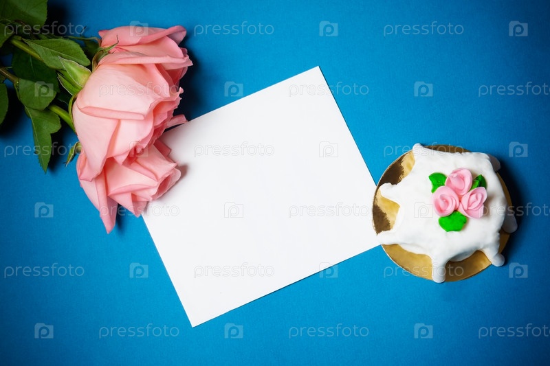 Розы, открытка и десерт