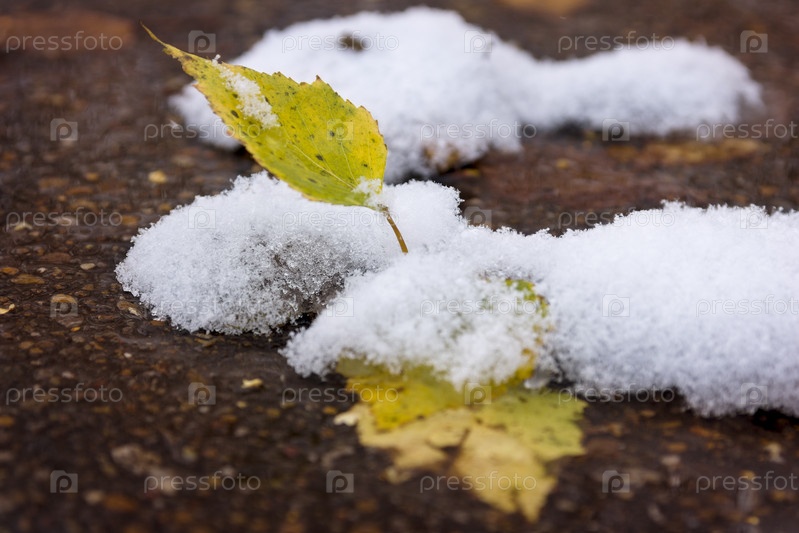 Осенний лист в снегу