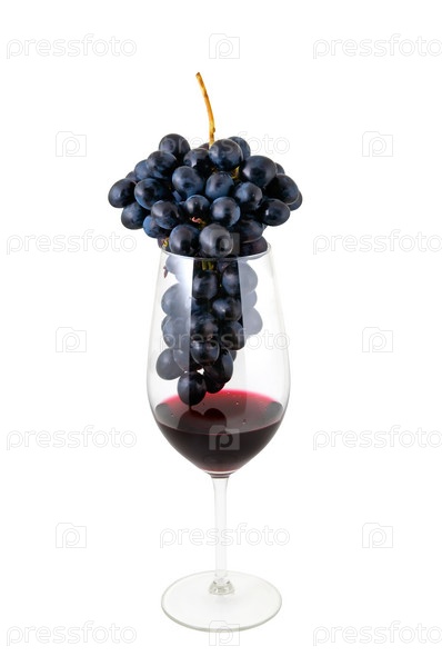 Гроздь винограда в бокале с вином