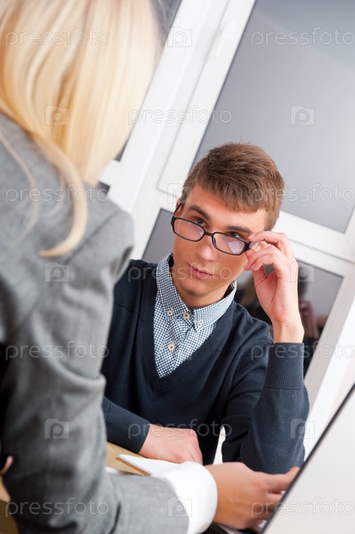 Молодые люди за работой в офисе