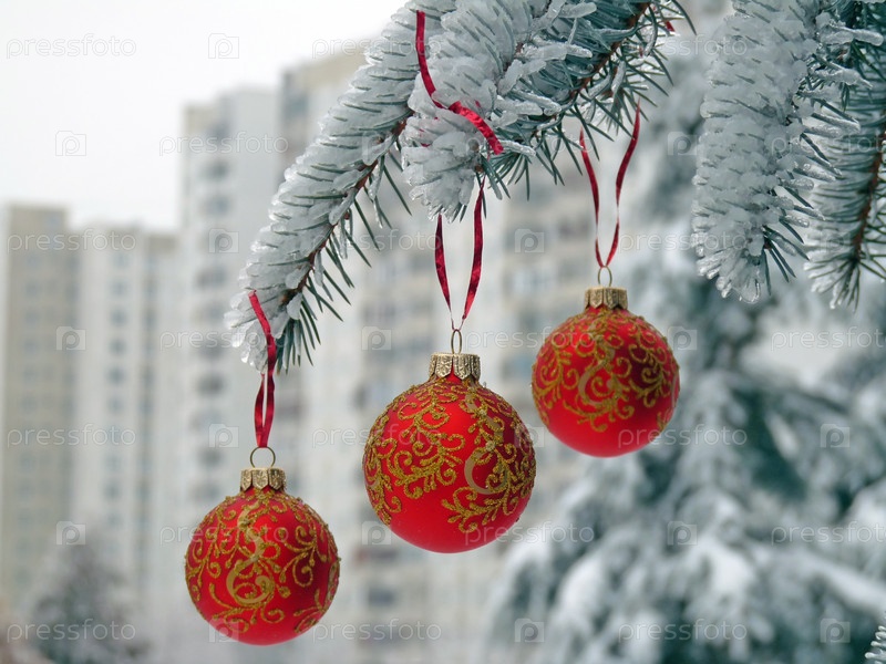 Елочные шары на еловой ветке