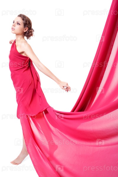 Молодая женщина в красном платье, изолирована на белом фоне