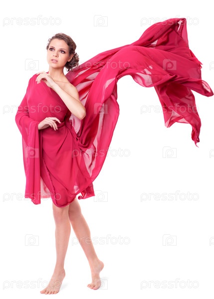 Молодая женщина в красном платье, изолирована на белом фоне