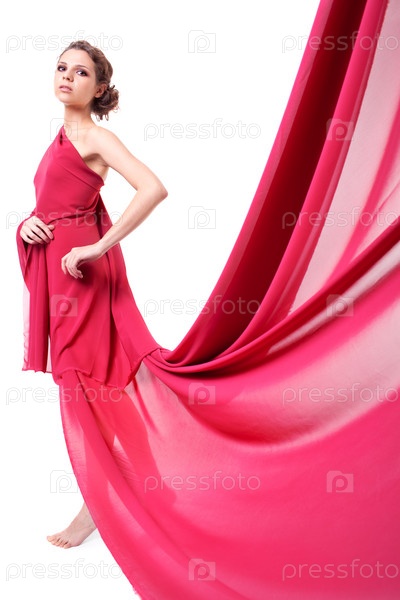 Молодая женщина в красном платье, изолирована на белом фоне