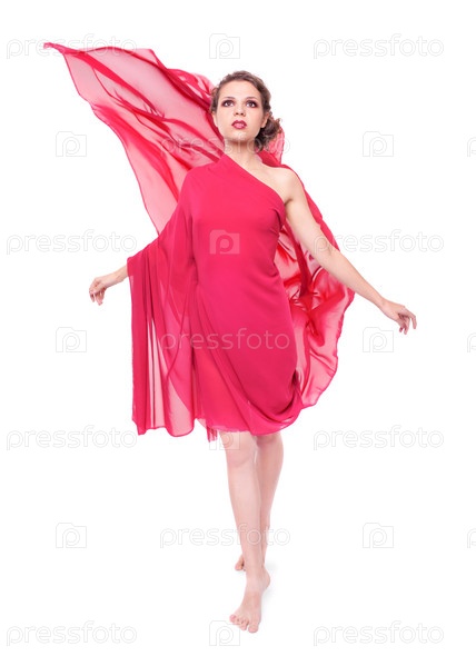 Молодая женщина в красном платье, изолирована на белом фоне
