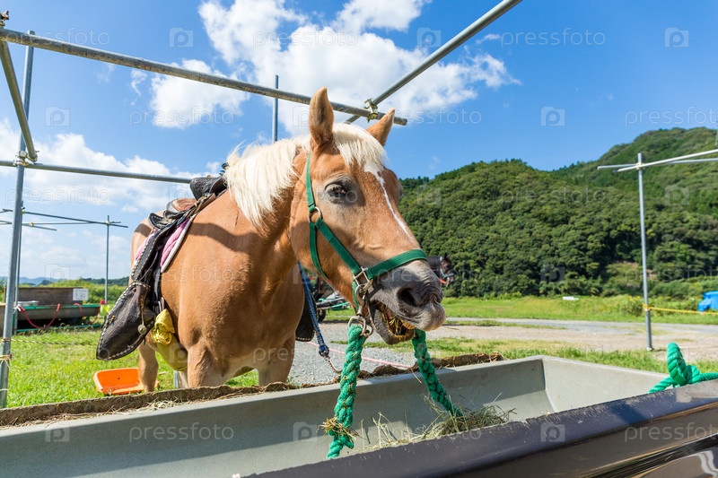 Лошадь ест сухую траву