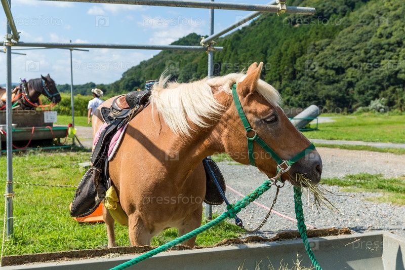 Лошадь ест сухую траву