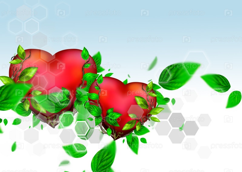 Сердца с зелеными листьями