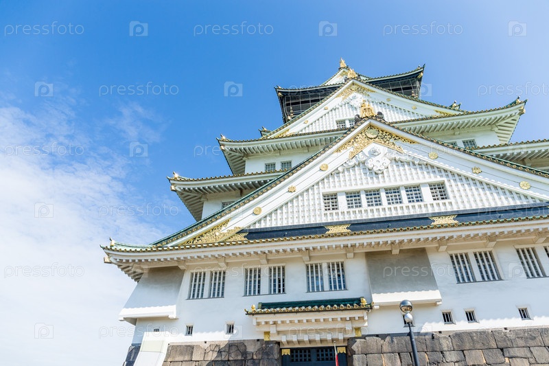 Замок в Осаке в Японии с четкие голубое небо