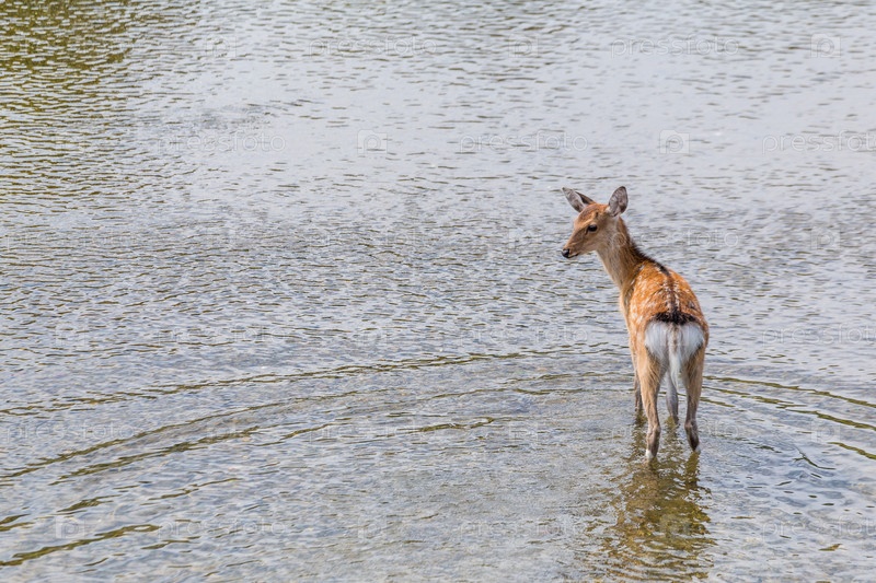 Пятнистый олень в реке