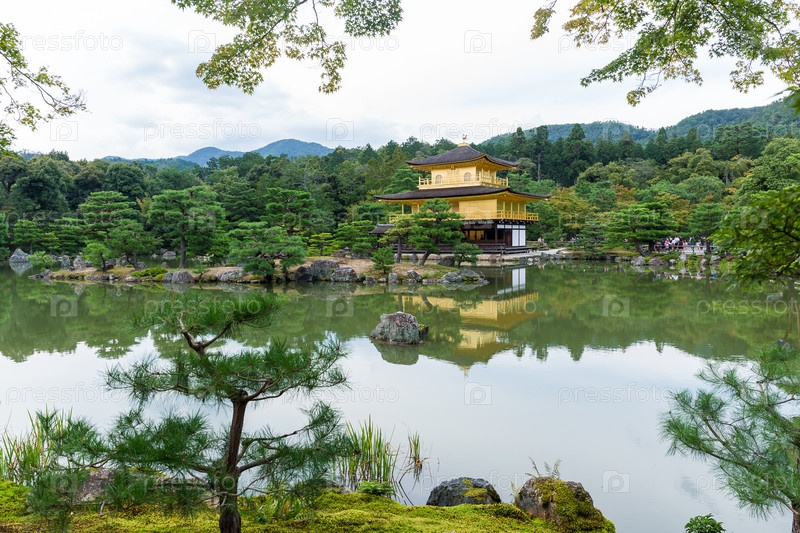 Храм (Золотой павильон) в Киото, Япония