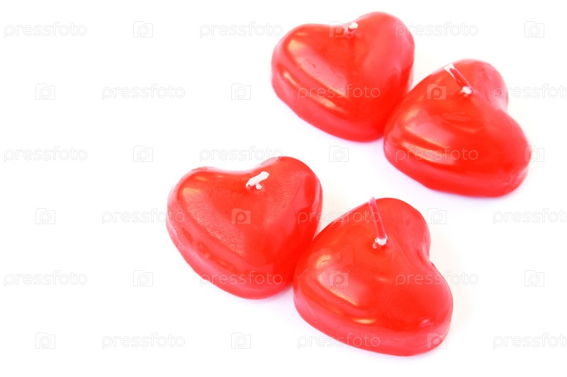 Свечи в форме сердца на белом фоне