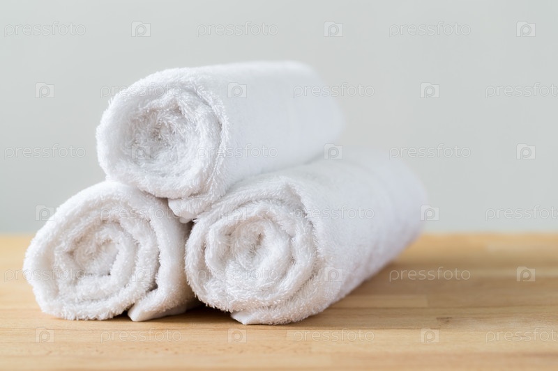 Полотенца белые спа на деревянный столе